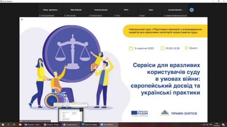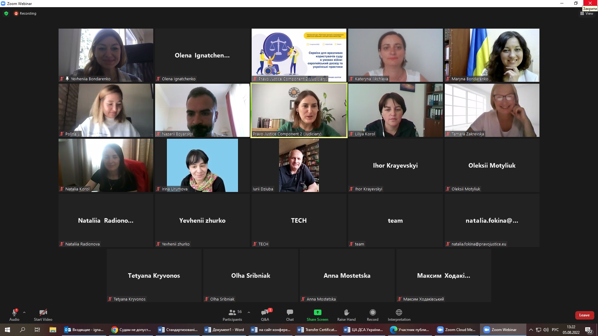 5 серпня 2022 року представники Державної судової адміністрації України взяли участь в онлайн-конференції "Сервіси для вразливих користувачів суду в умовах війни: європейський досвід та українські практики", яка організована Проєктом ЄС "Право – Justice ІІ".