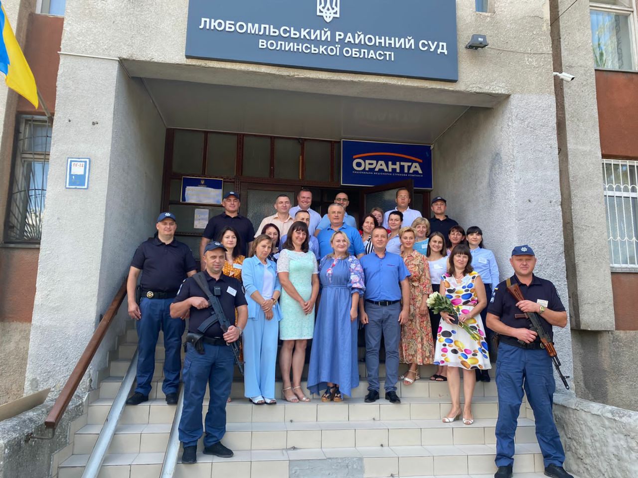 З нагоди відновлення роботи Любомльського районного суду Волинської області, звернулися з вітальними словами до суддів та працівників апарату суду та побажали перемоги Україні, миру, спокою, успіхів членкиня Вищої ради правосуддя Інна ПЛАХТІЙ, голова Волинського апеляційного суду Віктор ГАПОНЧУК, начальник Територіального управління Державної судової адміністрації України в Волинській області Наталія КОЦИРІЙ, міський голова Любомльської міської ОТГ Роман ЮЩУК та начальник Територіального управління Служби судової охорони у Волинській області Володимир СЮЙВА.