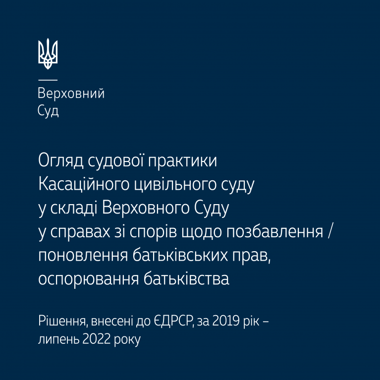 До огляду внесено низку важливих правових висновків КЦС ВС, висловлених у справах зі спорів щодо позбавлення / поновлення батьківських прав, оспорювання батьківства, які матимуть значення для формування єдиної правозастосовної практики. Серед цих висновків слід виокремити такі: