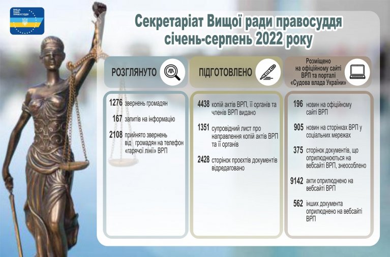 1276 звернень громадян та 167 запитів на інформацію розглянуто секретаріатом Вищої ради правосуддя протягом восьми місяців 2022 року.