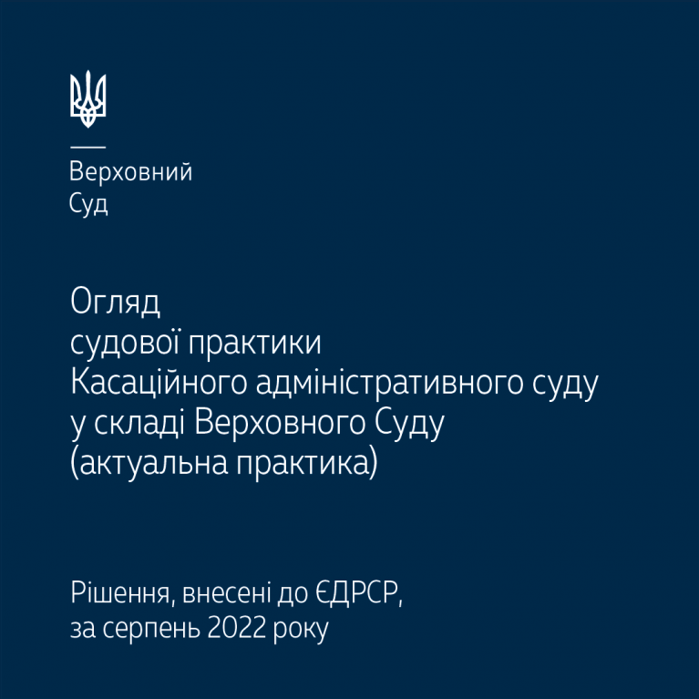 Пропонуємо ознайомитися з оглядом актуальної судової практики Касаційного адміністративного суду у складі Верховного Суду, в якому представлено рішення, внесені до ЄДРСР, за серпень 2022 року – https://bit.ly/3xDzcfz.