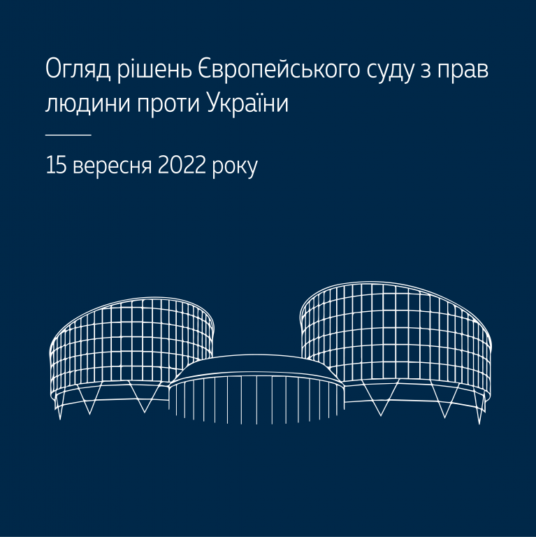 Верховний Суд пропонує до уваги позачерговий огляд практики Європейського суду з прав людини за рішеннями, ухваленими проти України й оприлюдненими 15 вересня 2022 року – https://cutt.ly/IVLhqMV.