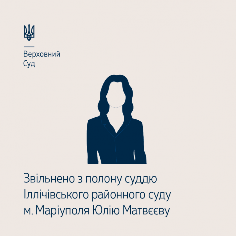 Суддю Іллічівського районного суду м. Маріуполя Юлію Матвєєву звільнено з полону в рамках обміну полоненими між Україною та країною-агресором, що відбувся вчора – 17 жовтня 2022 року.