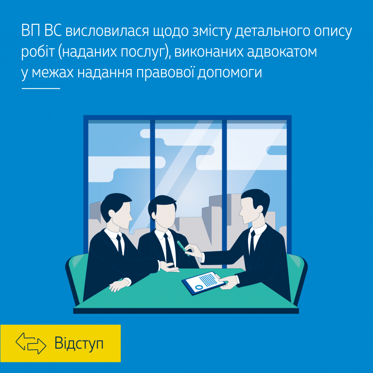 ВП ВС висловилася щодо змісту детального опису робіт (наданих послуг), виконаних адвокатом у межах надання правової допомоги