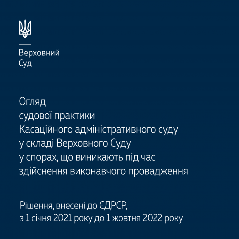 Пропонуємо ознайомитися з оглядом судової практики Касаційного адміністративного суду у складі Верховного Суду у спорах, що виникають під час здійснення виконавчого провадження, в якому представлено рішення, внесені до ЄДРСР, з 1 січня 2021 року до 1 жовтня 2022 року – https://bit.ly/3hFfBa4.