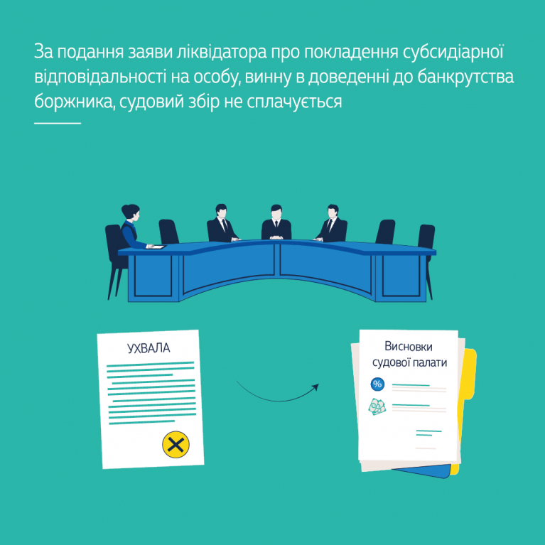 З метою формування однакової судової практики щодо застосування положень п. 2 ч. 2 ст. 4 Закону України «Про судовий збір» при визначенні розміру сплати судового збору за подання до господарського суду заяви ліквідатора в суді першої інстанції, а також за оскарження судових рішень у судах апеляційної та касаційної інстанцій за результатами розгляду заяви ліквідатора в суді першої інстанції про покладення субсидіарної відповідальності на третіх осіб, які відповідно до законодавства несуть субсидіарну відповідальність за зобов'язаннями боржника у зв’язку з доведенням його до банкрутства, судова палата сформулювала такі висновки.