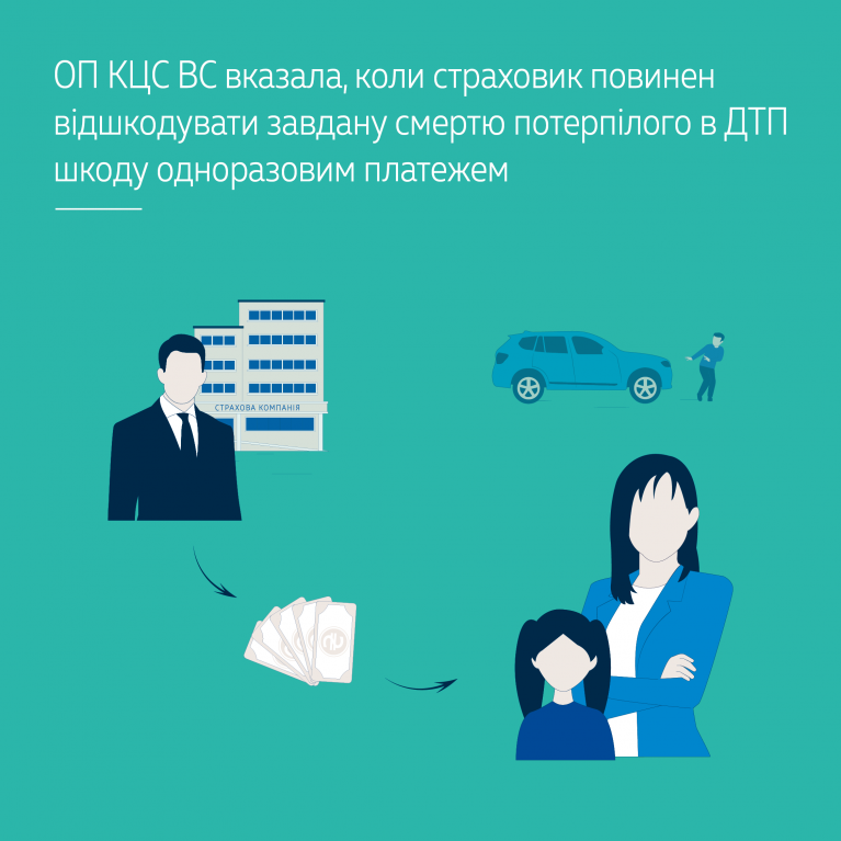 Апеляційний суд скасував зазначене рішення суду й ухвалив нове – про відмову в задоволенні позову, оскільки відшкодування шкоди, пов’язаної зі смертю потерпілого, може бути виплачено у вигляді одноразової виплати, однак ЦК України не зобов’язано страховика здійснити саме одноразову виплату. Районний суд помилково не застосував положення статей 1200, 1202 ЦК України, які регулюють спірні правовідносини, з урахуванням бланкетної норми – п. 27.2 ст. 27 Закону України «Про обов’язкове страхування цивільно-правової відповідальності власників наземних транспортних засобів».