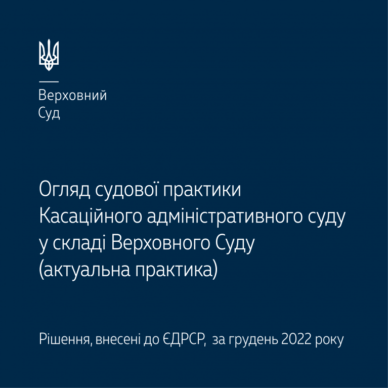 Пропонуємо ознайомитися з оглядом актуальної судової практики Касаційного адміністративного суду у складі Верховного Суду, в якому представлено рішення, внесені до ЄДРСР, за грудень 2022 року – https://bit.ly/3weotr4.