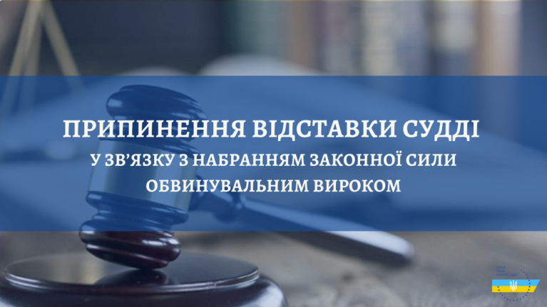 Статтею 145 Закону України «Про судоустрій і статус суддів» встановлено, що однією з підстав для припинення відставки судді є набрання законної сили обвинувальним вироком щодо нього за вчинення умисного злочину.