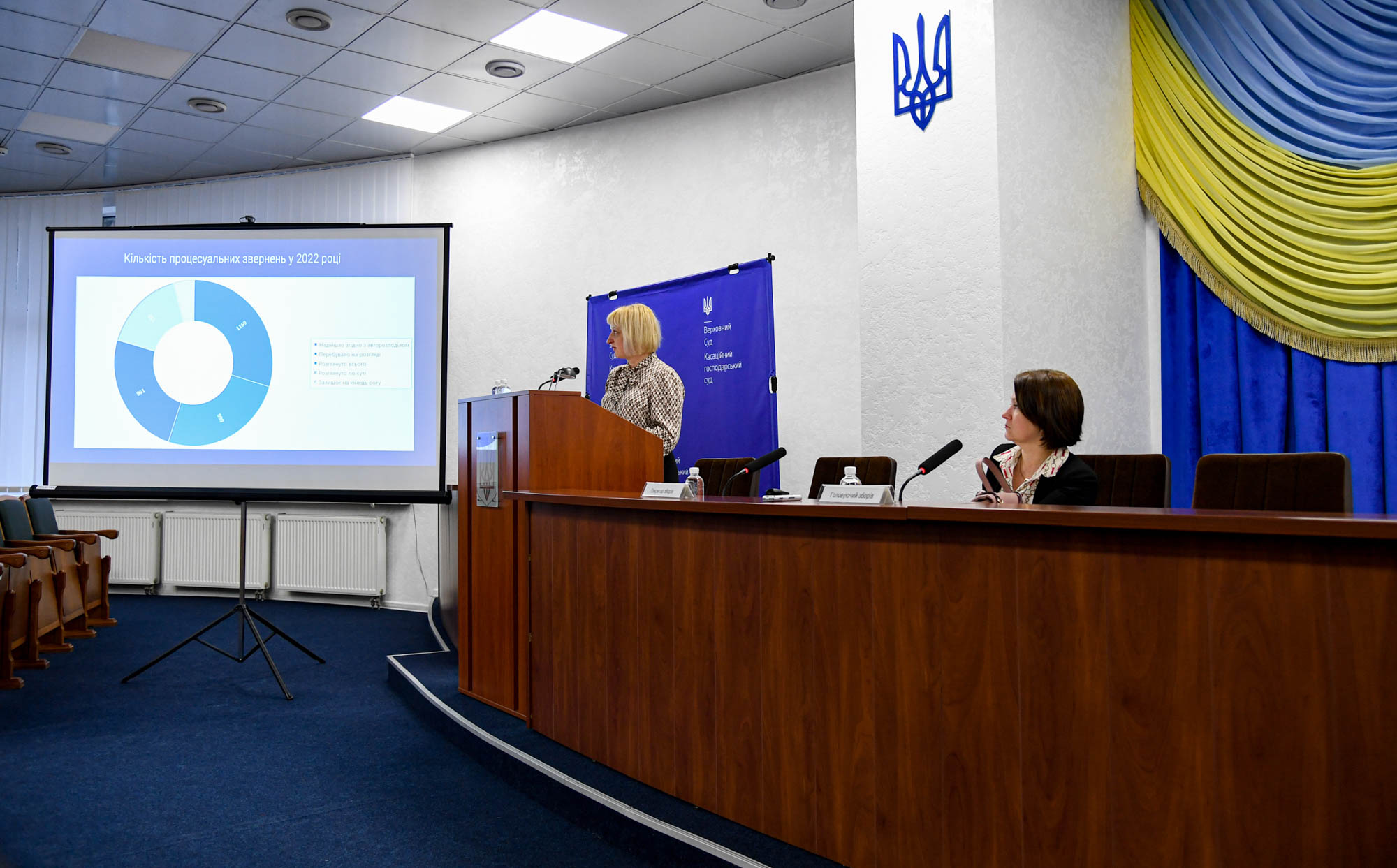 «Попри складні часи система господарських судів укотре довела, що вона є організованою, стабільною та такою, що відповідає потребам господарських відносин в оперативному і кваліфікованому вирішенні спорів», – наголосила спікерка та детально зупинилася на статистичних показниках роботи за звітний рік.