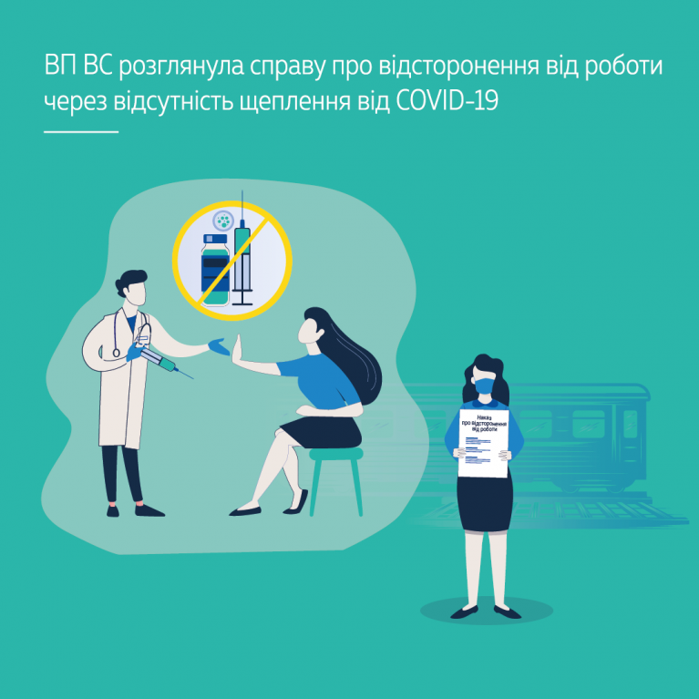 У грудні 2021 року працівницю АТ «Укрзалізниця» було відсторонено від роботи через відсутність щеплення від COVID-19. Вона оскаржила до суду цей наказ, просила його скасувати, поновити її на посаді та стягнути заробітну плату.