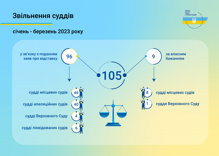 Протягом січня - березня 2023 року Вища рада правосуддя ухвалила рішення щодо звільнення 105 суддів з посад за загальними обставинами.