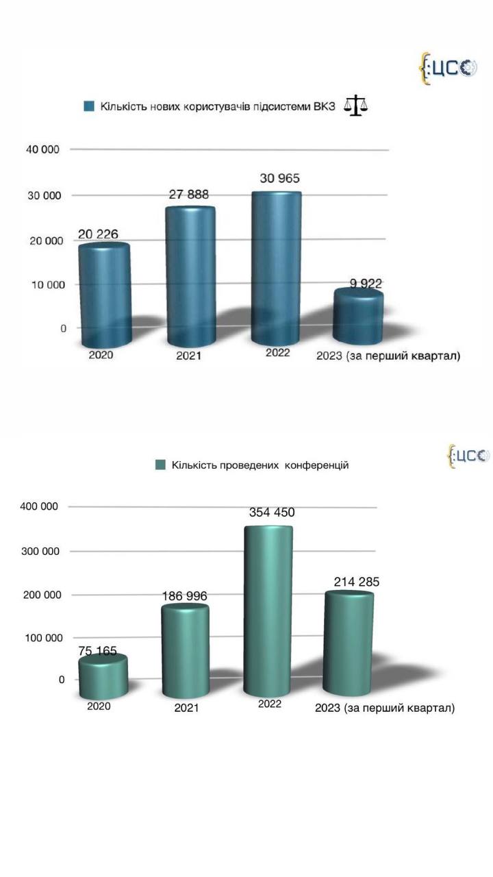 Як бачимо, підсистема ВКЗ ЄСІТС стає все більш популярною серед користувачів. Кількість зареєстрованих користувачів та проведених відеоконференцій за останні роки значно збільшилася, а це підтверджує те, що даний функціонал є ефективним і зручним інструментом для взаємодії між судом та учасниками судових процесів.