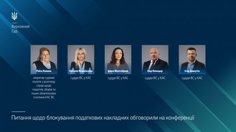 Ініціатор та модератор конференції – суддя Верховного Суду у Касаційному адміністративному суді Наталія Блажівська зазначила, що цей захід є продовженням започаткованих фахових обговорень найважливіших проблемних питань, які виникають у сфері оподаткування. Так, на попередній конференції було детально розглянуто проблематику мораторію на проведення перевірок. Вдалося створити майданчик, на якому слухачі отримують відповіді на найболючіші питання. Цього разу на обговорення винесено найважливіші питання стосовно блокування податкових накладних і представлено спеціальну доповідь бізнес-омбудсмена України Романа Ващука. Важливо пам’ятати, що для особи, яка звертається до суду з позовом, найважливішим є ефективний засіб судового захисту, ефективне поновлення порушеного права.