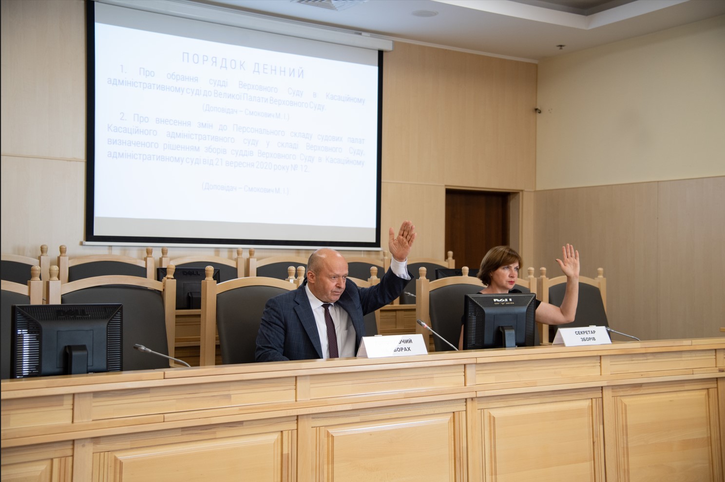Також на зборах було внесено зміни до персонального складу судових палат КАС ВС, постійних колегій суддів і резервних суддів для постійних колегій суддів у складі судових палат КАС ВС.