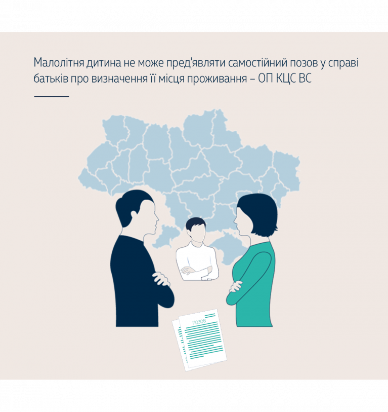 У справі, яка переглядалася ОП КЦС ВС з метою забезпечення єдності судової практики, батько подав позов про визначення місця проживання малолітнього сина з ним, а мати подала зустрічний позов про визначення місця проживання дитини з нею. Малолітній син через свого законного представника – батька (як третя особа, яка заявляє самостійні вимоги на предмет спору) звернувся до суду з окремим позовом, у якому просив залишити своє місце проживання та постійного перебування з батьком.