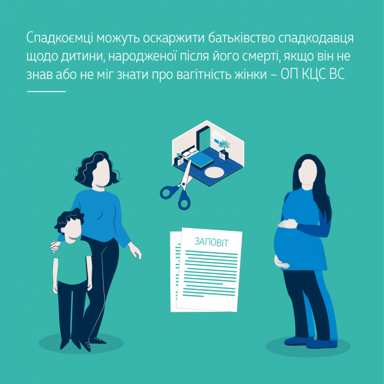ОП КЦС ВС зауважила, що можуть існувати випадки, коли чоловік, який записаний батьком після смерті, помер до народження дитини і не знав або не міг знати про вагітність жінки, з якою перебував у шлюбі. У подібних випадках у спадкоємців чоловіка, який записаний батьком дитини після його смерті, виникає спір про те, чи є чоловік батьком новонародженої дитини. Позбавлення спадкоємців права оспорювати батьківство чоловіка, який записаний батьком дитини, що народилася вже після його смерті, суперечить принципу розумності та справедливості, а саме на таких засадах регулюються сімейні відносини.