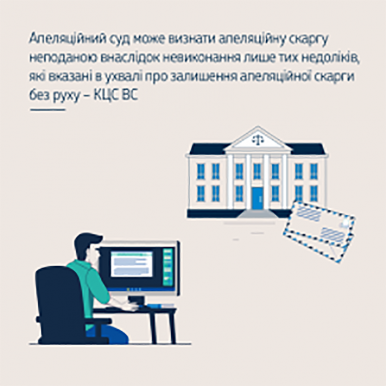 Верховний Суд вирішив, що апеляційний суд не звернув увагу на те, що визнання апеляційної скарги неподаною та повернення її заявнику можливе лише в разі неусунення заявником недоліків, зазначених в ухвалі про залишення апеляційної скарги без руху.