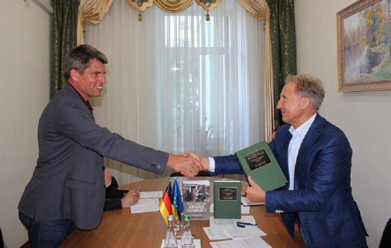 Крім того, під час зустрічі Прокурор передав Національній школі суддів України два міжнародних видання, що розкривають процедуру застосування міжнародного законодавства під час воєнної агресії проти людства: “Законодавство, яке застосовується під час збройного конфлікту: міжнародне гуманітарне право під час війни”, автор Гарі Д. Соліс, та “Злочин агресії: коментар”, за редакцію Клауса Кресса та Стефана Барріга.