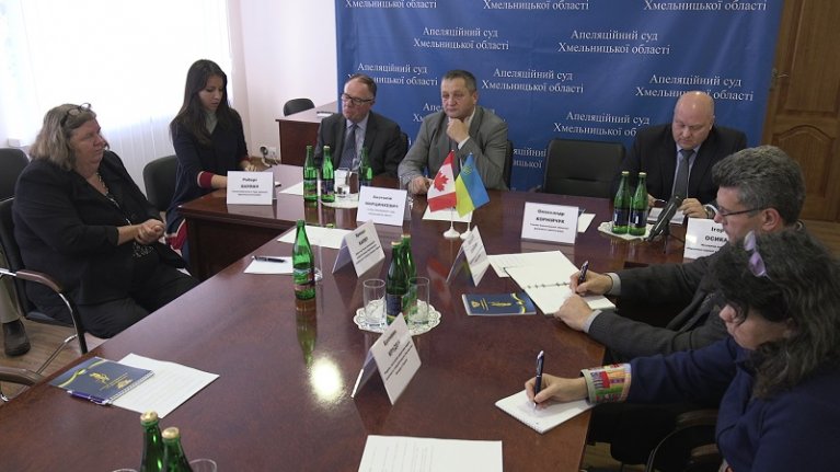 Сьогодні в Апеляційному суді Хмельницької області побувала делегація в складі представників судової системи та Міністерства міжнародних справ Канади. Цей візит відбувся в рамках канадсько-українського проекту «Підтримка судової реформи в Україні», до якого долучено і Хмельниччину. До нас завітали голова Верховного суду провінції Британська Колумбія Роберт Бауман, директор групи міжнародного співробітництва Національного суддівського інституту Канади Бренда Капер, Радник Посольства Канади в Україні Бронвин Курден, провідний експерт проектів Посольства Канади в Україні Валерій Олійник, менеджер проекту Ігор Осика.