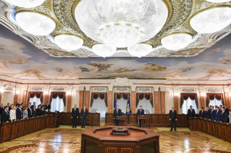 Президент Петро Порошенко взяв участь в урочистій церемонії складання присяги суддями нового Верховного Суду та привітав новопризначених суддів.