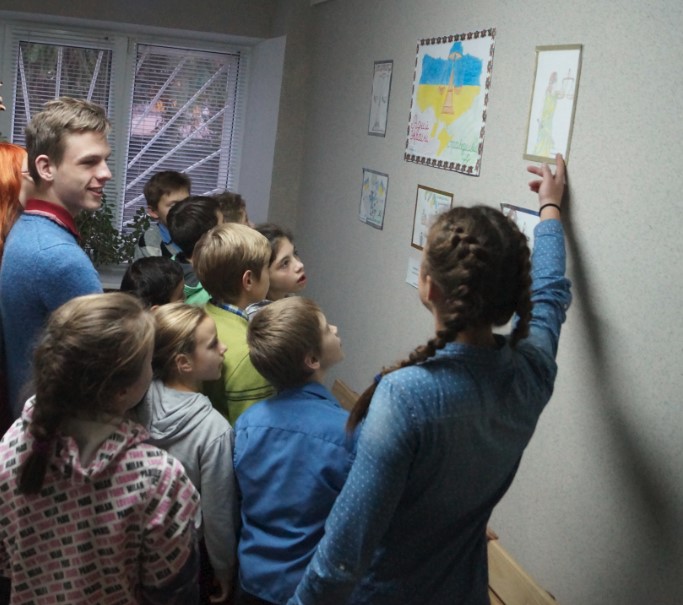 Також юні художники мали можливість оглянути виставку Павла Новікова, яка зараз виставляється в Сумському окружному адміністративному суді та має назву: «Під тінню старого саду».
