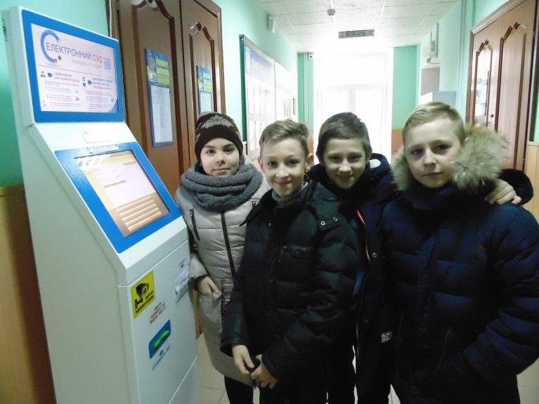 Після цього Алла Шевченко показала як працює інформаційний кіоск, що розміщений на 3 поверсі приміщення суду. Кожен із учнів хотів спробувати самостійно знайти судову справу за власним прізвищем.