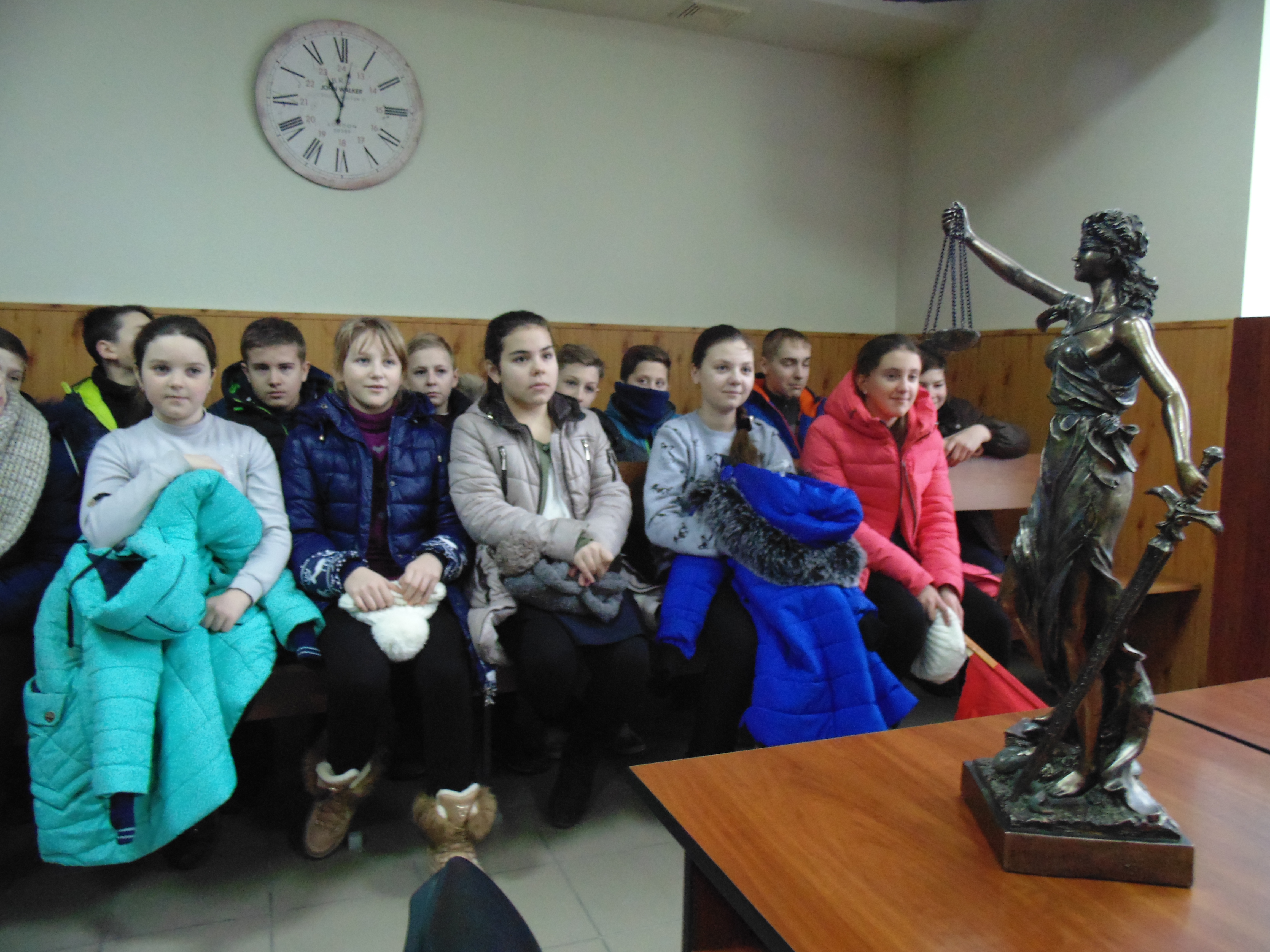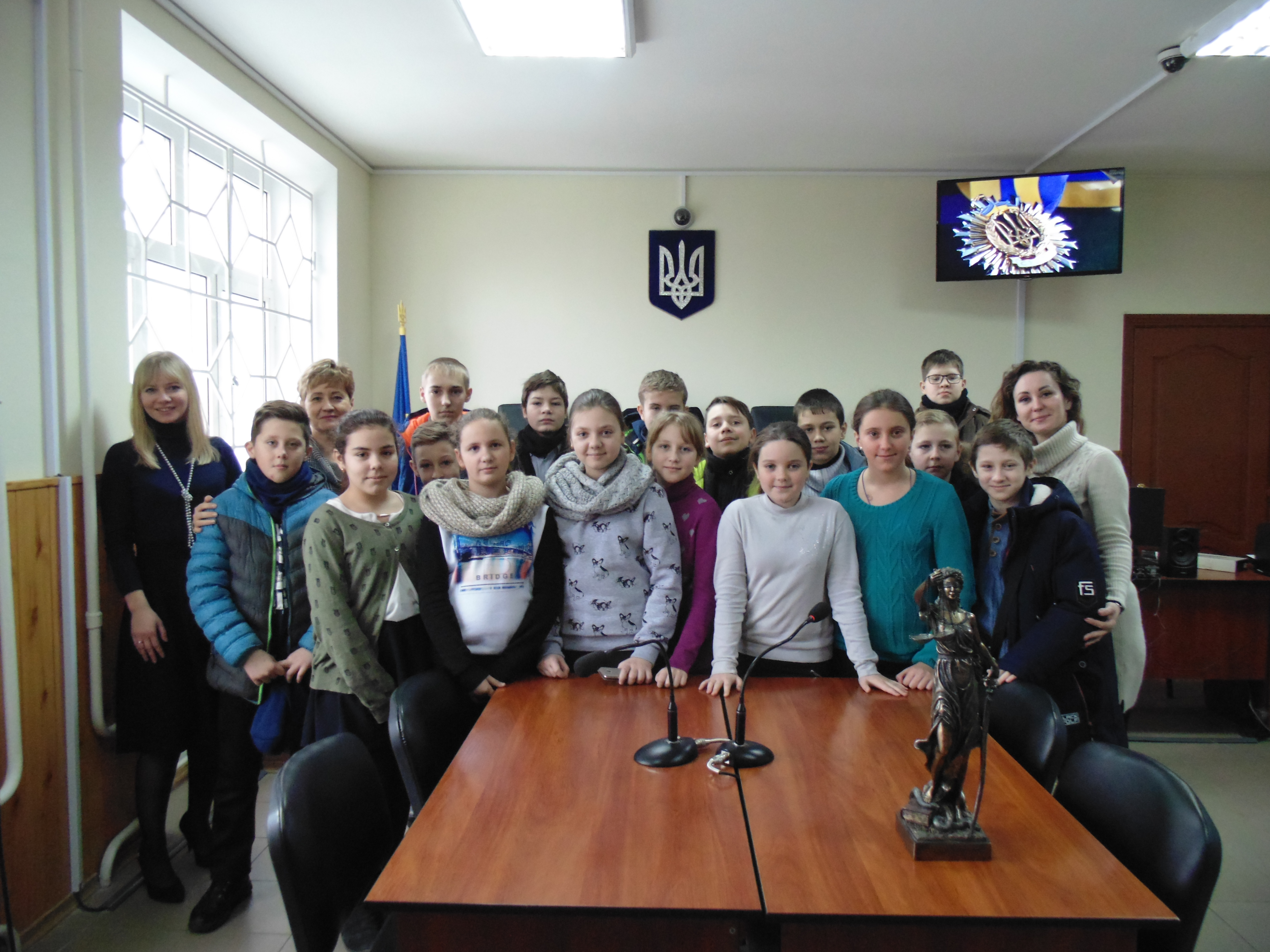 Зустріла учнів керівник апарату суду Алла Шевченко, яка провела коротеньку екскурсію приміщенням суду. Разом із керівником апарату суду діти відвідали архів суду та мали змогу побачити як зберігаються справи. Дітлахи були вражені кількістю справ, що тут зберігаються. З цікавістю розглядали стелажі із найстарішими судовими матеріалами.