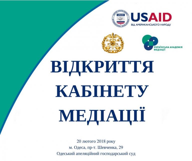 20 лютого 2018 року в адміністративній будівлі Одеського апеляційного господарського суду та Господарського суду Одеської області відбудеться урочисте відкриття кабінету медіації.