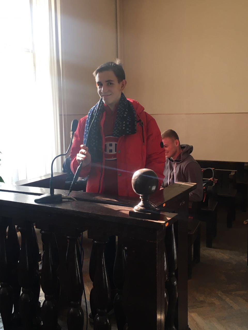 Помічник голови суду Мороз В.В. провів з учнями бесіду щодо правил поводження в суді, коротко ознайомив з історією судочинства та основними принципами роботи судів загальної юрисдикції загалом.