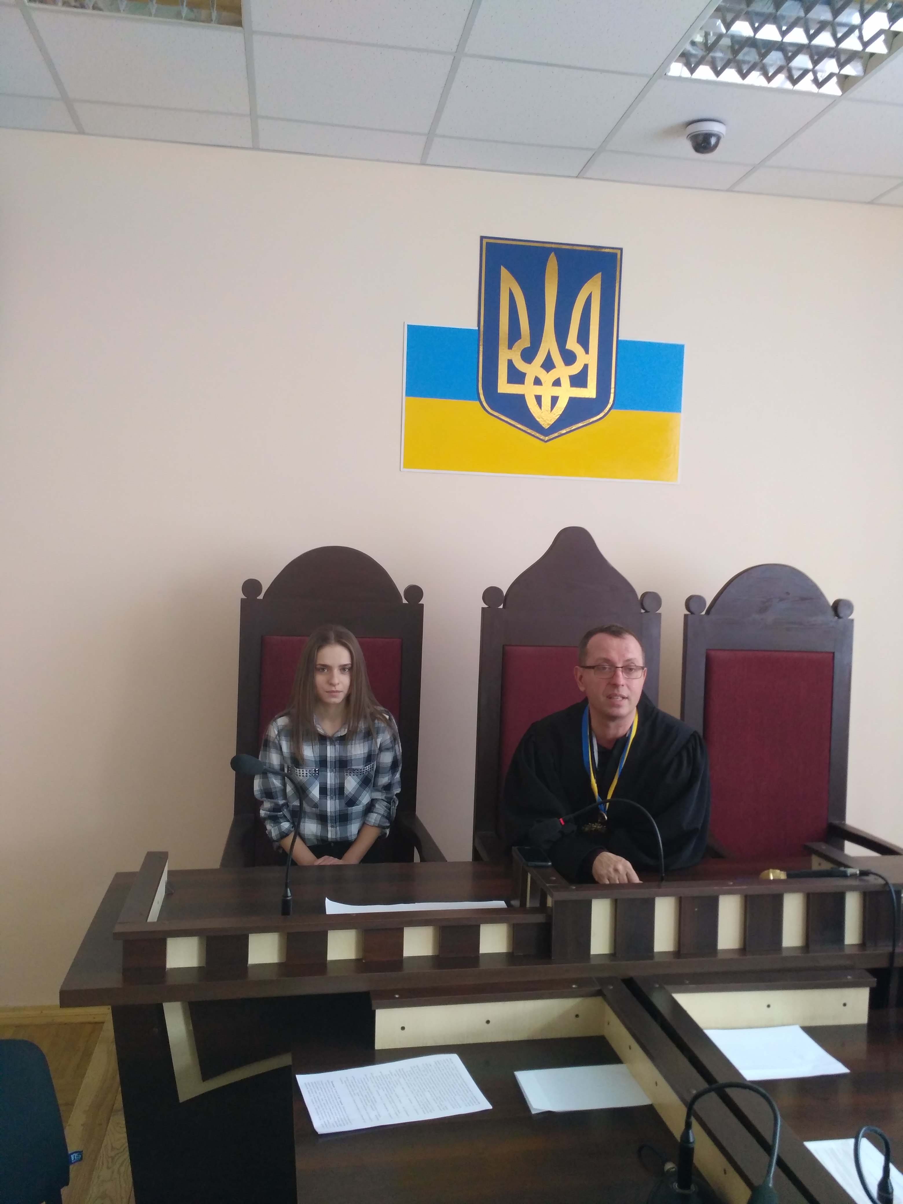 Першим кроком цього ознайомлення стало відвідування зали судового засідання, де з учасниками заходу провів бесіду голова суду Шелюховський М.В., який одразу ж запросив до себе у крісло судді старосту класу. Він розповів про роботу судді, категорії справ, які розглядаються в місцевих судах, про загородження, яке відокремлює обвинувачених (підсудних), засуджених від складу суду та присутніх, що відповідає європейським стандартам, про розгляд справ за участі присяжних та ін. Дав відповіді на запитання дітей та вчителя.