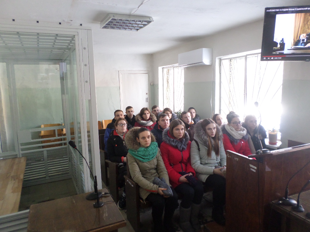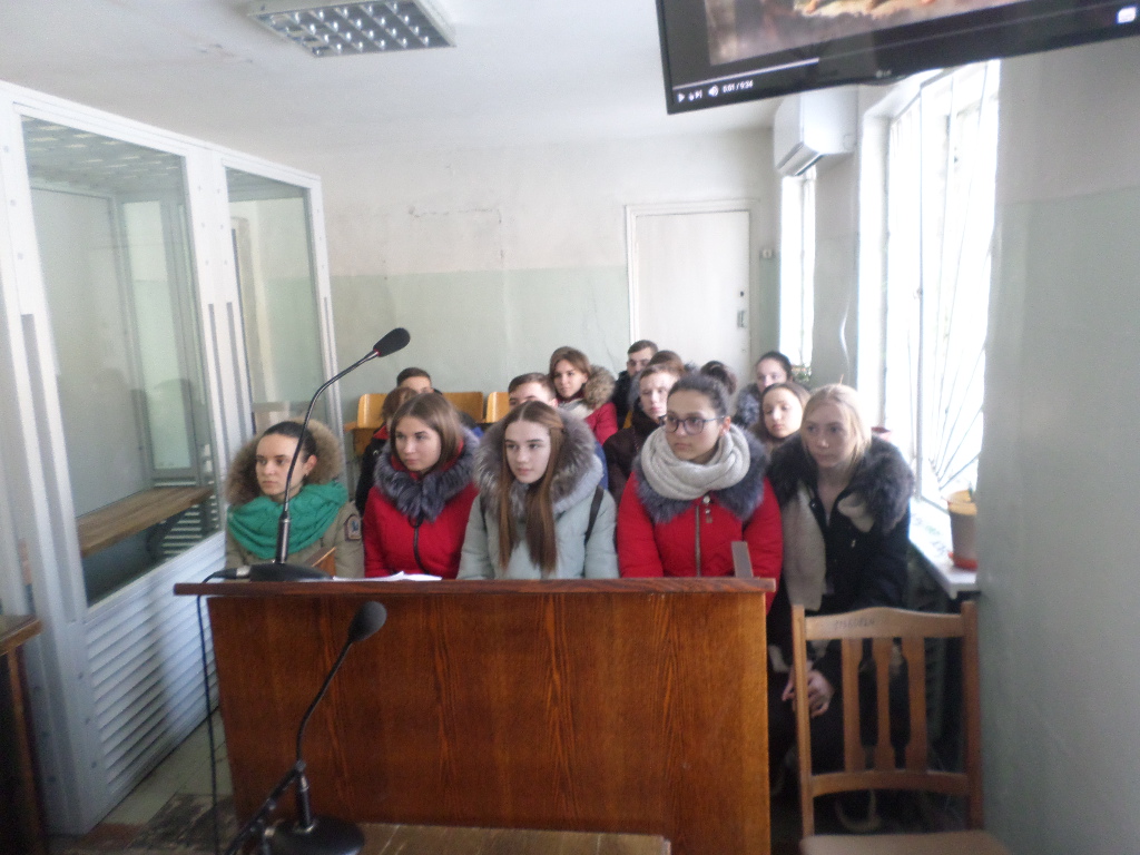 Даний захід розпочав голова суду Шовкун В.О., який розповів учням про особливості розгляду справ зі свого практичного досвіду. Після чого відповів на запитання учнів. Консультант суду Кривошей В.В., ознайомив учасників заходу з діяльністю суду та інноваційними підходами до роботи. Також у доступній для учнів формі було роз’яснено порядок надання та отримання інформації, порядок звернення до суду, про що слід пам`ятати під час перебування в суді, як поводити себе під час слухання справи, які існують негативні наслідки порушення правил поведінки в суді.