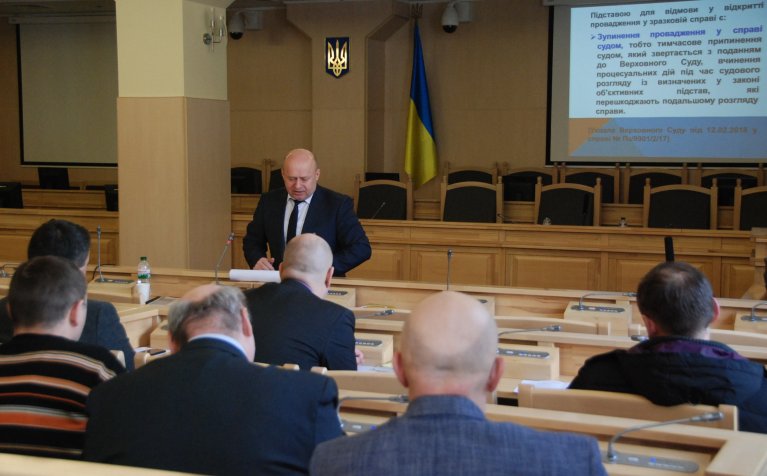 Важливим елементом навчання суддів став семінар в режимі відеоконференції з Секретаріату Європейського суду з прав людини (ЄСПЛ) на тему «Застосування статті 1 Першого протоколу до Конвенції про захист прав людини і основоположних свобод та відповідна практика Європейського суду з прав людини», який відбувся 14 березня 2018 року.