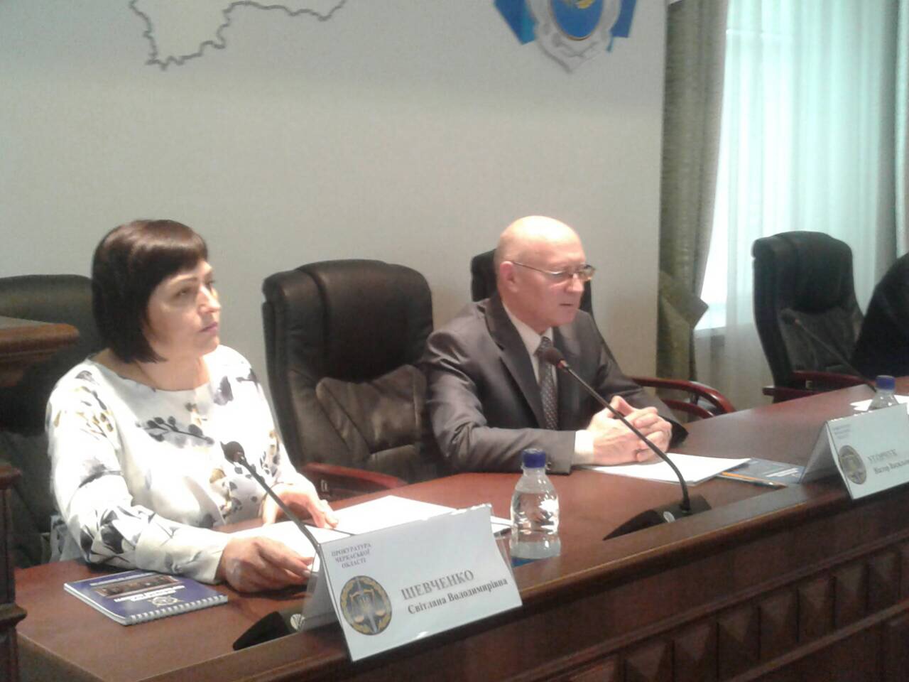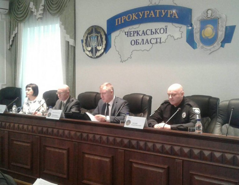 14 березня 2018 року в приміщенні прокуратури Черкаської області за участю прокурора Черкаської області Сергія Овчаренка, голови Придніпровського районного суду Черкаської області Віктора Угорчука, начальника ГУНП в Черкаській області Валерія Лютого, начальника ТУ ДСА України у Черкаській області Світлани Шевченко відбулася робоча нарада у форматі «круглого столу», присвячена обговоренню щодо впровадження обміну електронними копіями документів між органами прокуратури Черкаської області та Придніпровським районним судом м. Черкаси, а також актуальним питанням розгляду клопотань слідчих та, або прокурорів про застосування заходів забезпечення кримінального провадження, залучення експертів, надання дозволів на проведення обшуків тощо, у зв’язку зі змінами до КПК України, які набирають чинності після 15.03.2018 року.