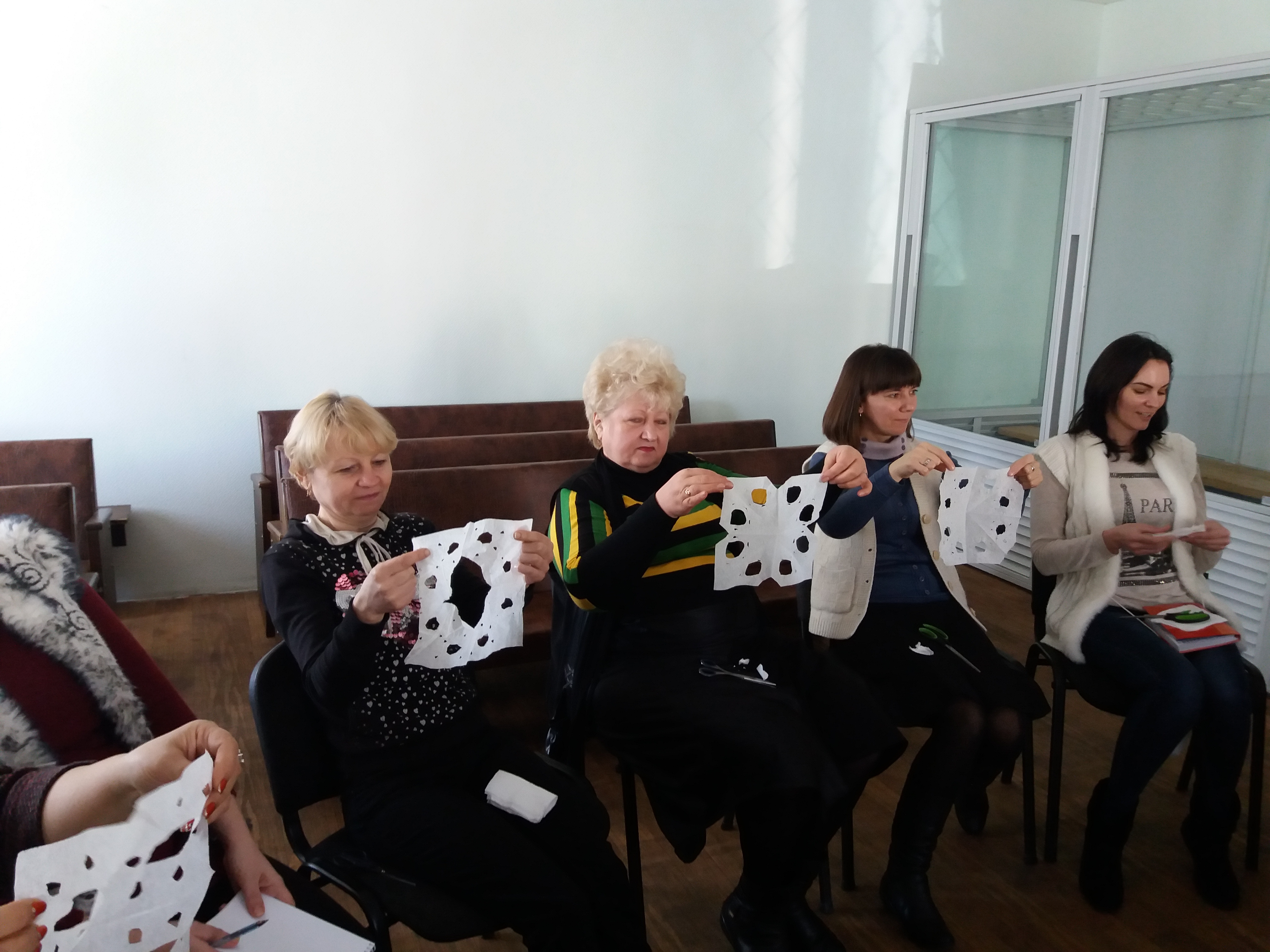 У ході тренінгового заняття виконувалися практичні завдання: вправа-колаж "Дерево", вправа "Квадрат", вправа "Серветка", вправа "Тарілка з водою" та інші завдання.