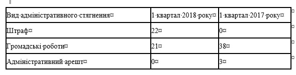Види адміністративних стягнень, які були накладені на правопорушників за даною категорією справ можливо переглянути у проілюстрованій нижче таблиці: