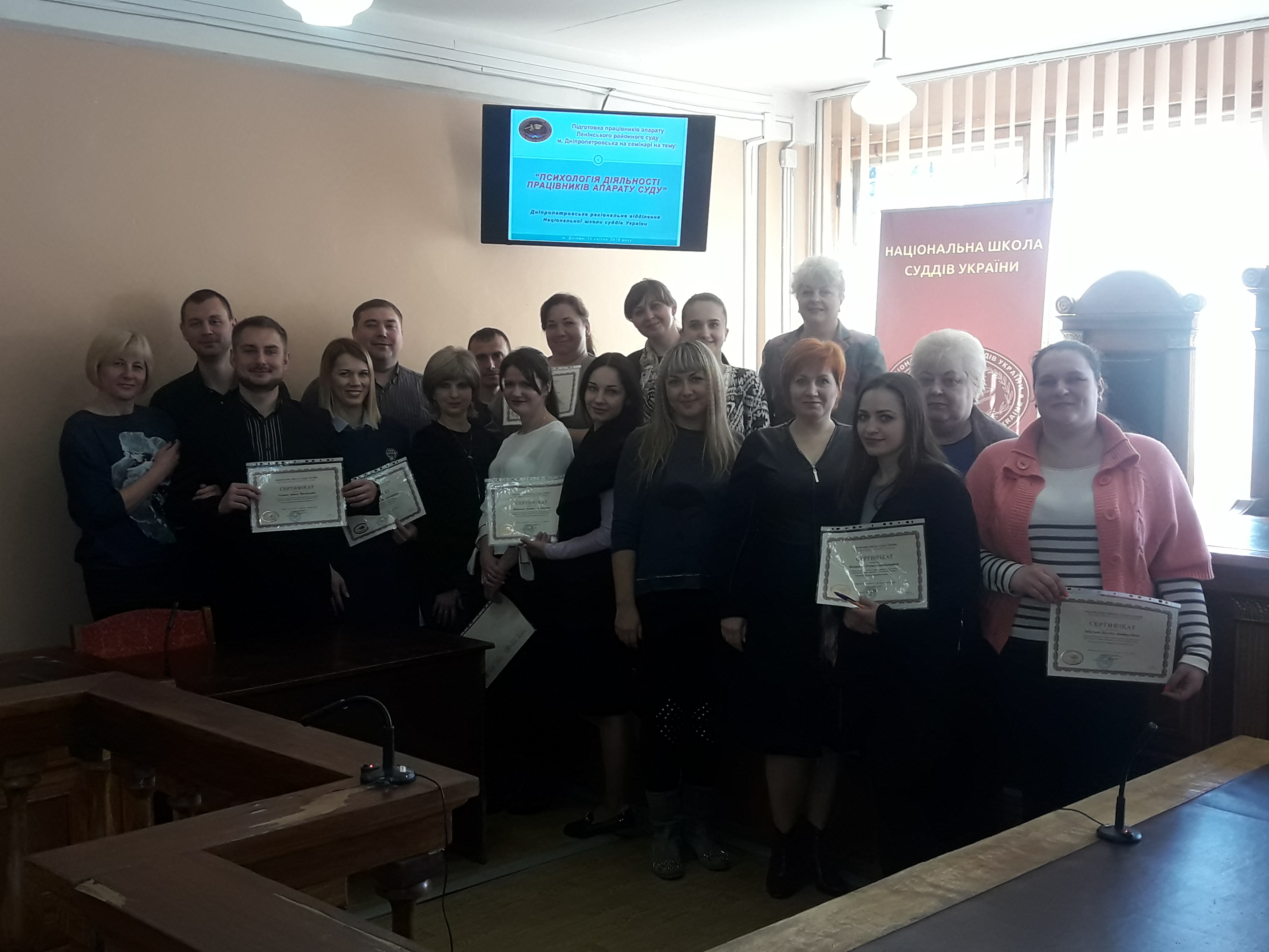 Після закінчення лекції Дніпровським регіональним відділенням Національної школи суддів України було проведено анкетне оцінювання та анкетне опитування учасників щодо якості та корисності тренінгу, а також вручено відповідні сертифікати про проходження тренінгу.