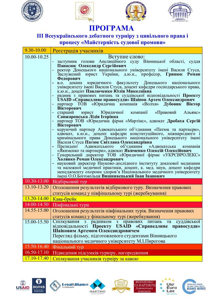 У суботу, 21 квітня, в апеляційному суді Вінницької області відбудеться ІІІ Всеукраїнський дебатний турнір із цивільного права і процесу «Майстерність судової промови».