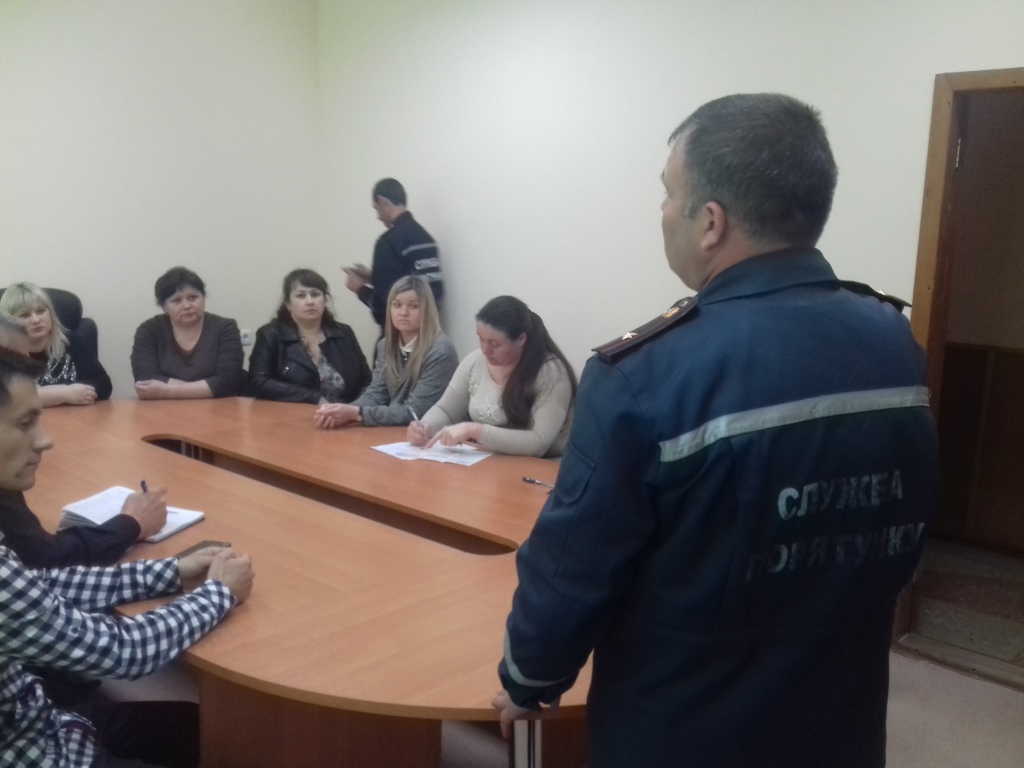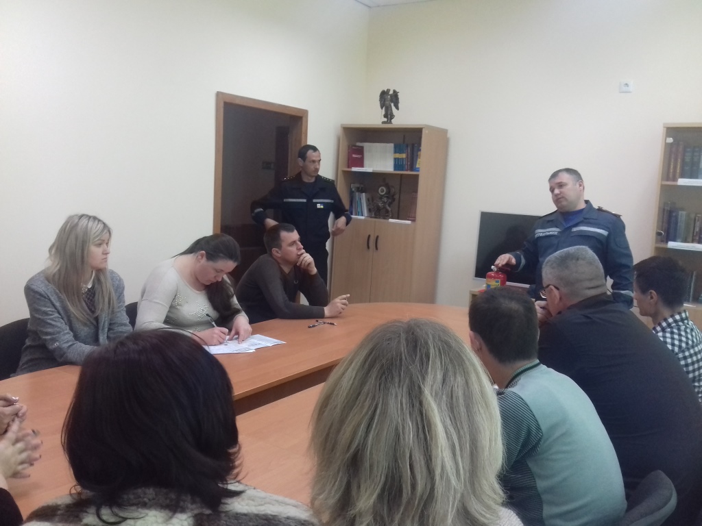 На даному заняті присутнім були роз’яснені протипожежні інструктажі з пожежно-технічного мінімуму та порядок організації експлуатації і обслуговування наявних засобів протипожежного захисту.