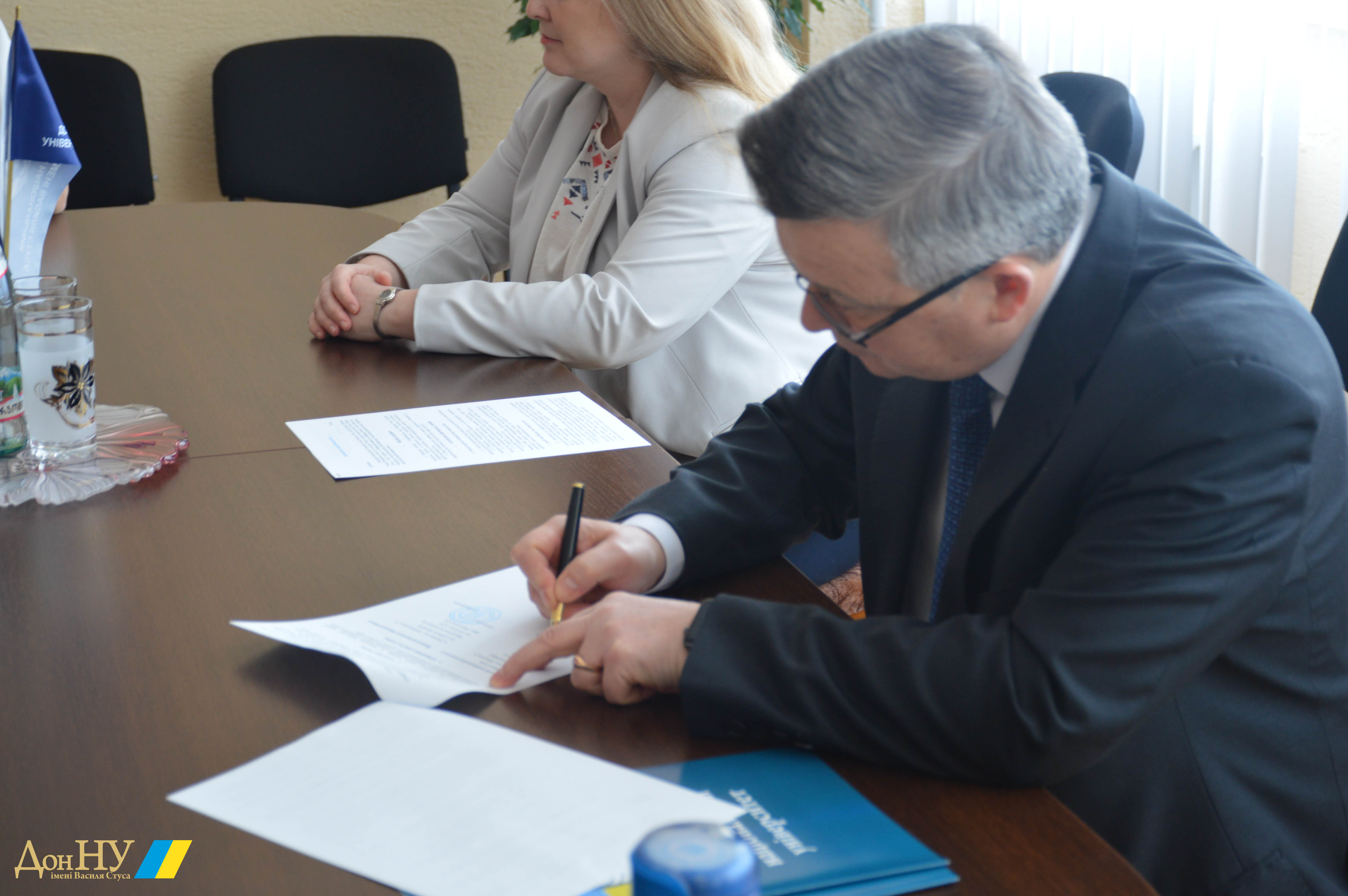 Вінницький міський суд Вінницької області в особі голови суду Андрія Михайленка та Донецький національний університет імені В. Стуса в особі ректора Романа Гринюка підписали договір про співпрацю. Зустріч відбулася 12 квітня 2018 року на базі університету. Крім очільників, у заході взяли участь керівник апарату суду Неля Гудемчук, заступник керівника апарату Руслана Федорова та кандидат юридичних наук, доцент кафедри цивільного права і процесу Антонюк Олена.