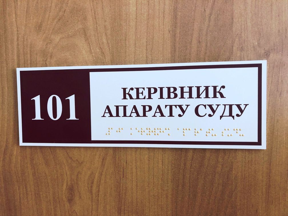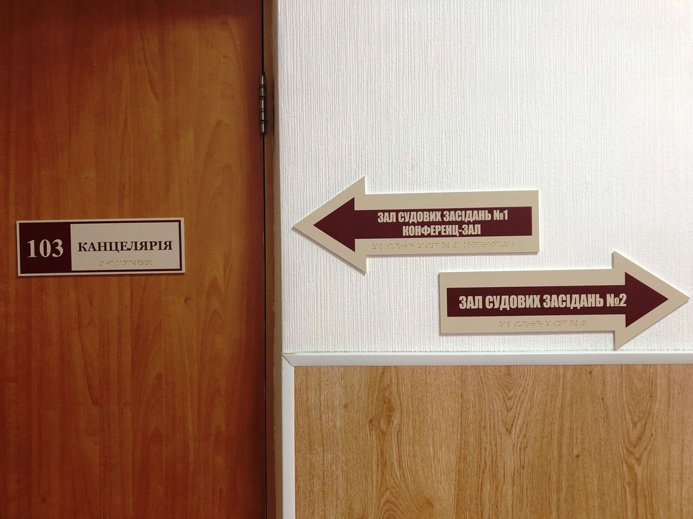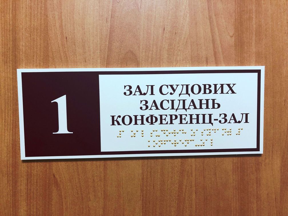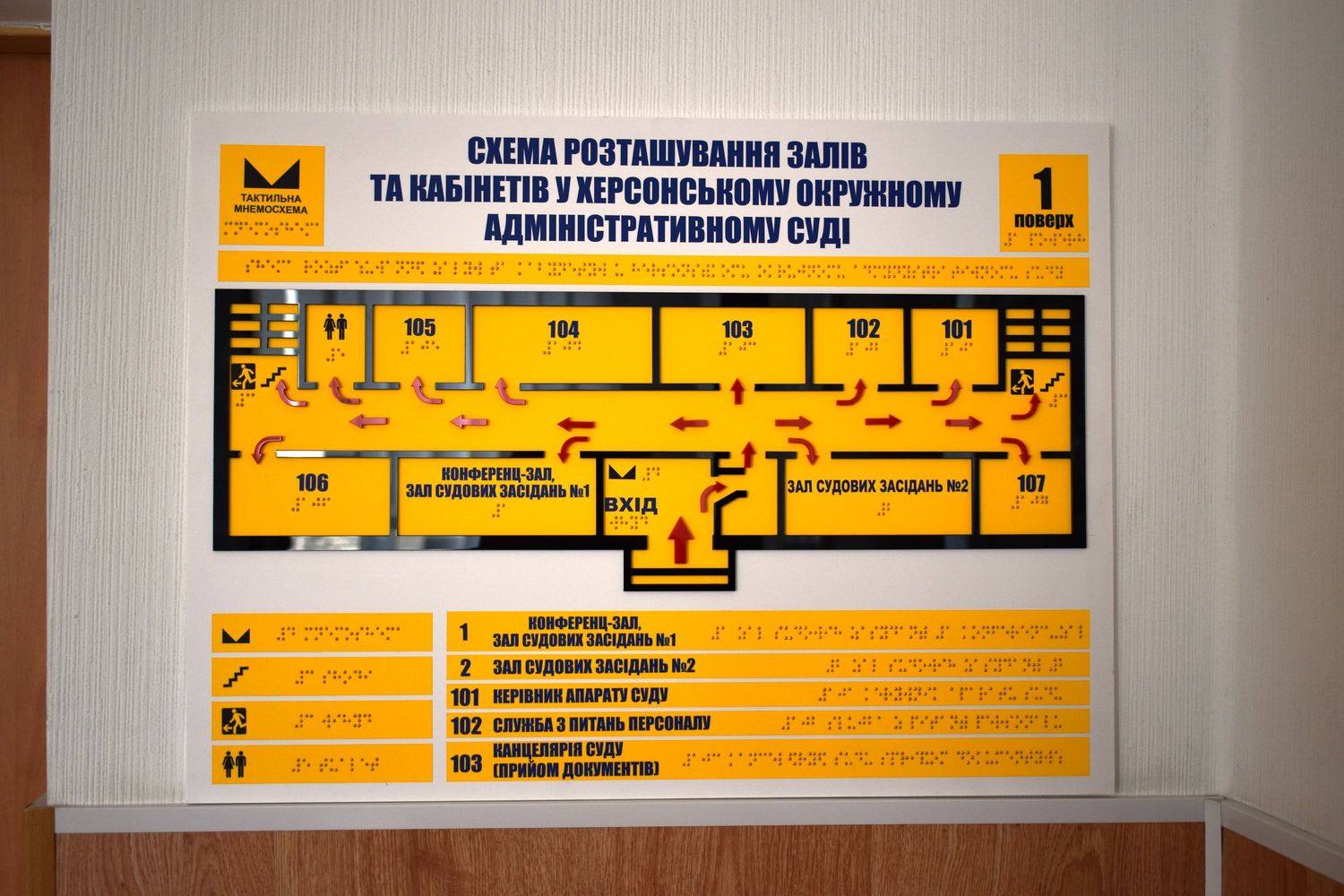 Відтепер для людей з вадами зору на дверях кабінетів встановлені таблички, виконані шрифтом Брайля. Таблички вказують на назву кабінету, наприклад: зал судових засідань, канцелярія, приймальня голови суду тощо. Аналогічна інформація (мнемосхема), виконана шрифтом Брайля, на якій ілюструється як орієнтуватись у приміщенні, встановлена в холі суду.