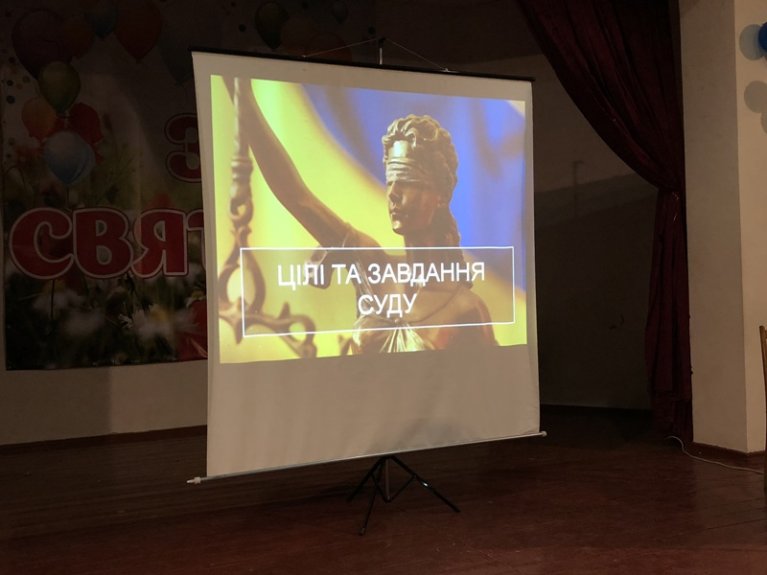 Під час інформаційно-виховної години суддя-спікер Мірошниченко О.В. сформував у учнів уявлення про організацію судової влади, здійснення правосуддя, завдання суду.