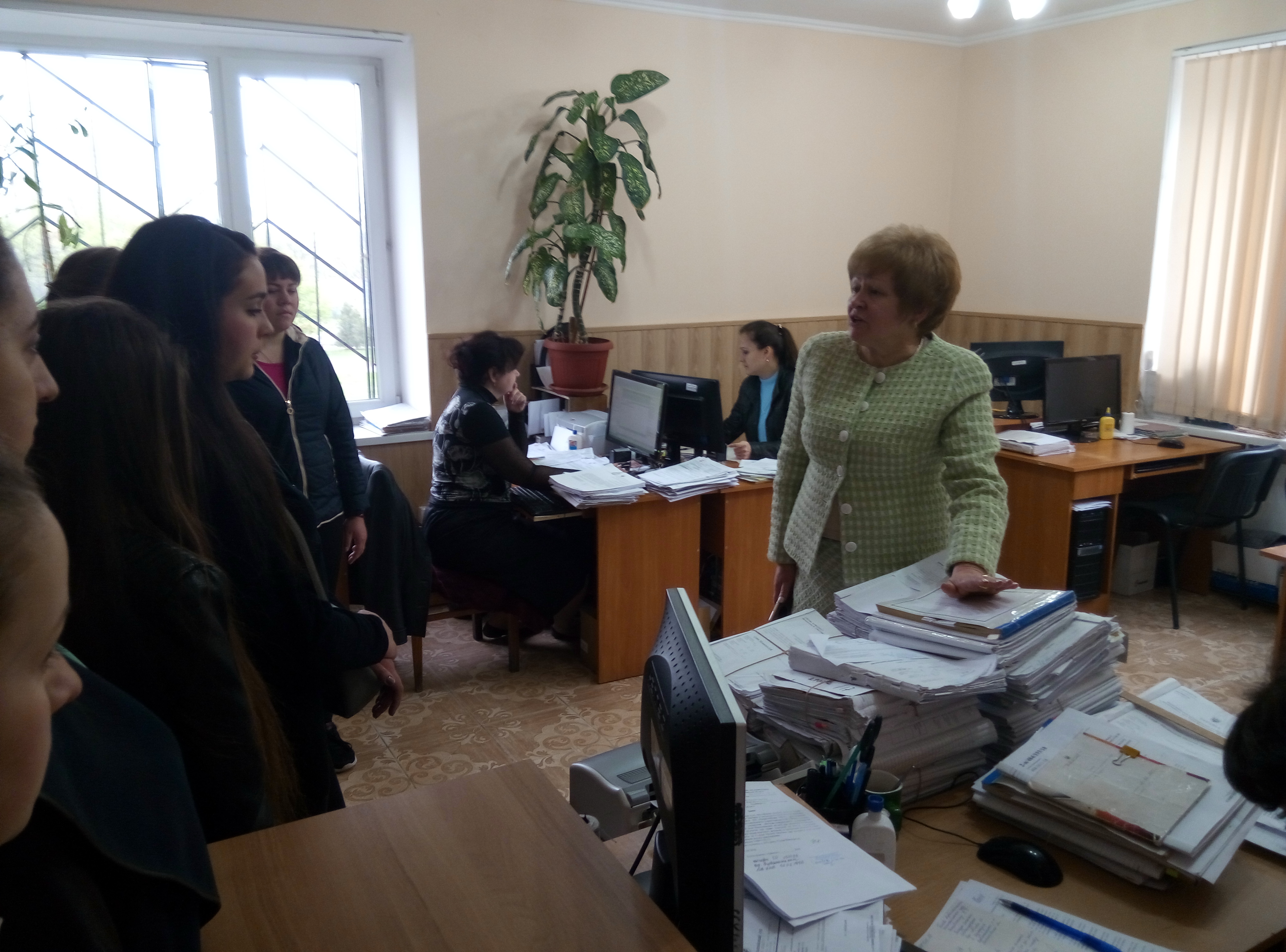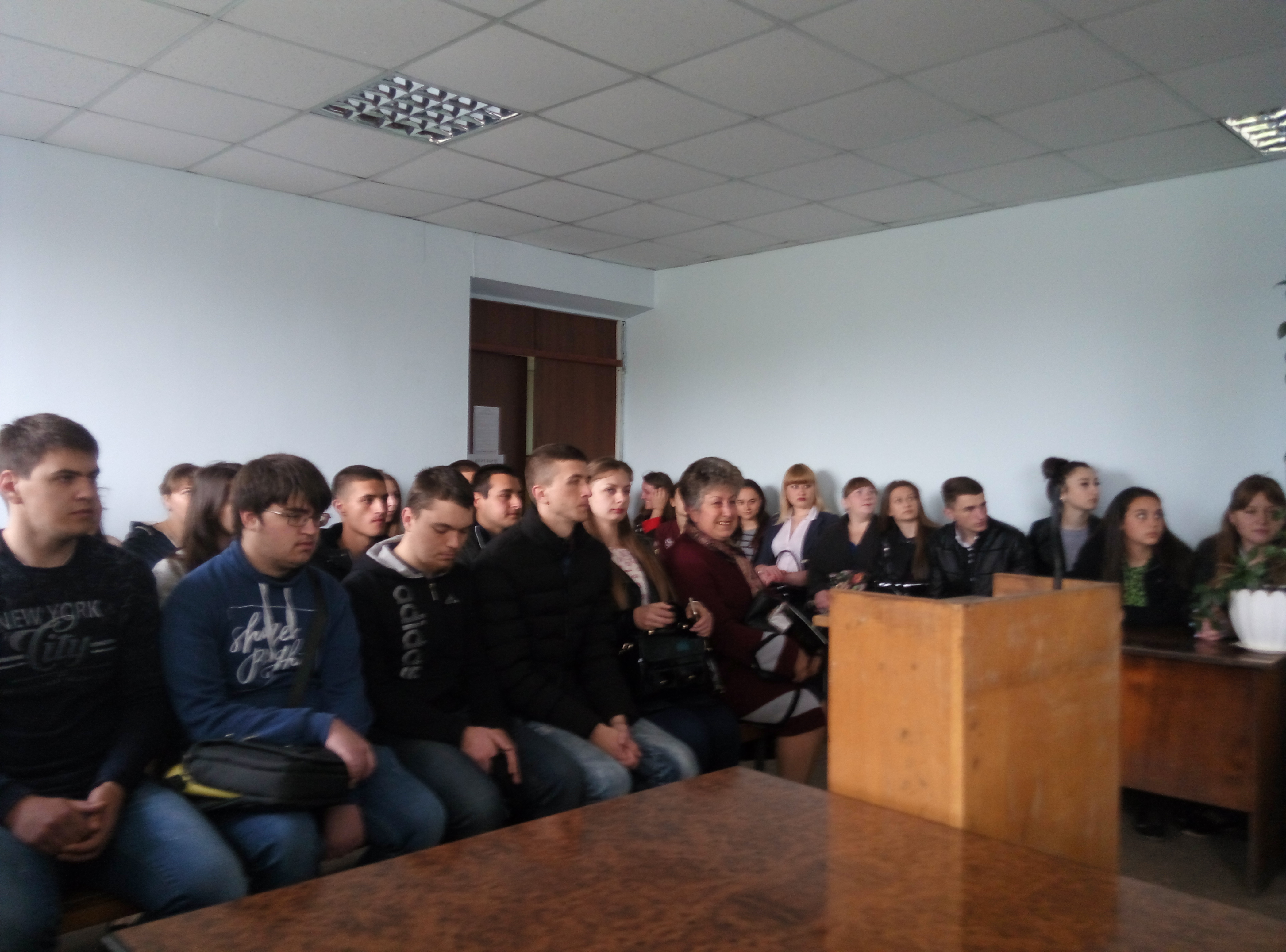 Коли всі студенти розмістилися у залі, Тетяна Яківна розповіла про те, як розподіляються справи між суддями, у якому вигляді надходять до суду та які умови висуваються до сучасного обладнання залу засідань. З порядком роботи у комп’ютерній програмі Д-3, порядком реєстрації справ різних категорій, ознайомив провідний спеціаліст з інформаційних технологій Беженуца О.І. Також, було оглянуто веб-сайт суду, продемонстровано судове засідання у режимі відеоконференцзв’язку. Секретар судового засідання Лянгорт З.О. розповіла студентам про засоби фіксування судового процесу.