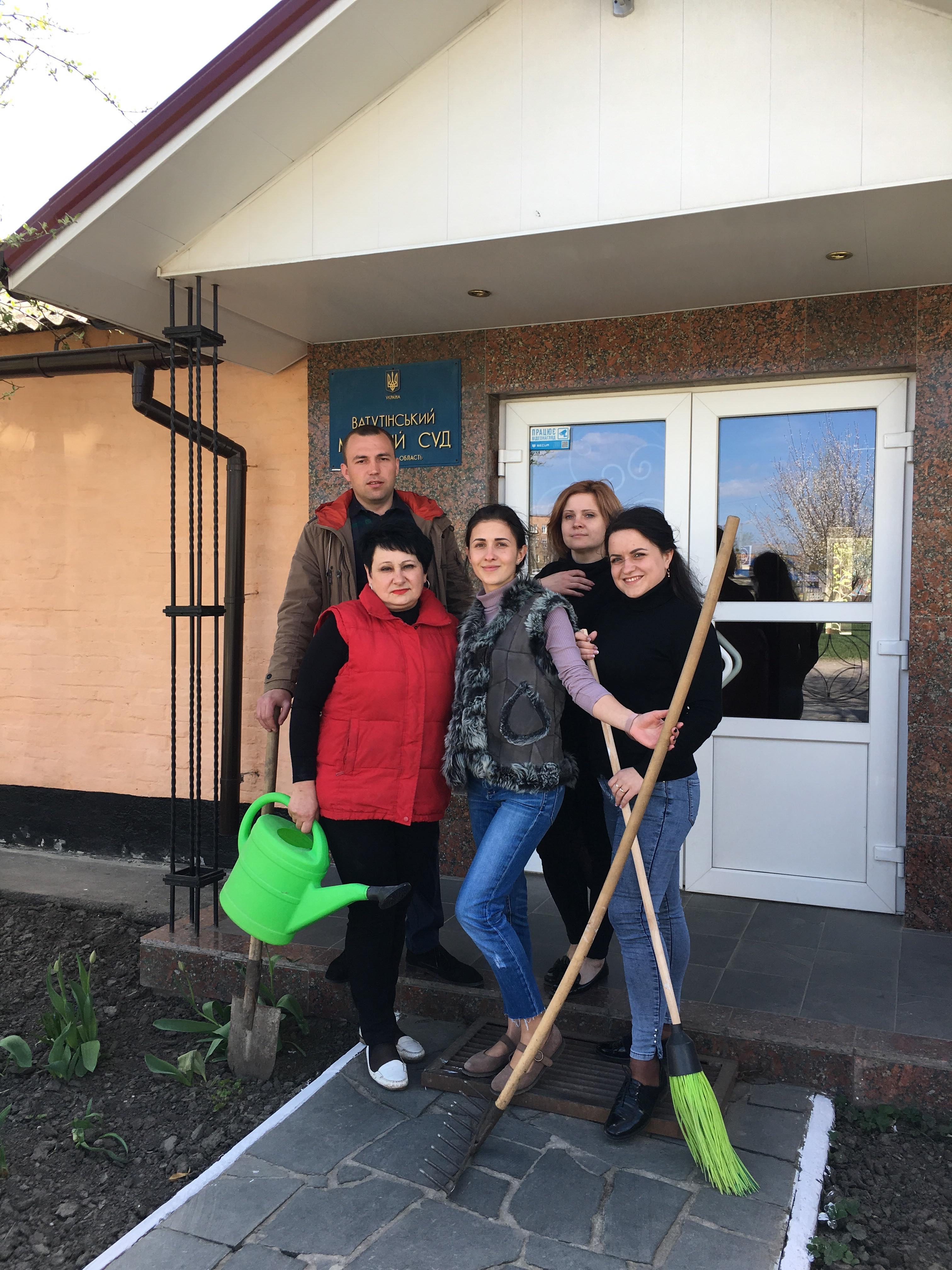 Так, напередодні Дня довкілля працівниками Ватутінського міського суду Черкаської області було наведено порядок на прилеглій території. Зокрема прибрано клумби, вивезено сміття, побілено дерева та бордюри.