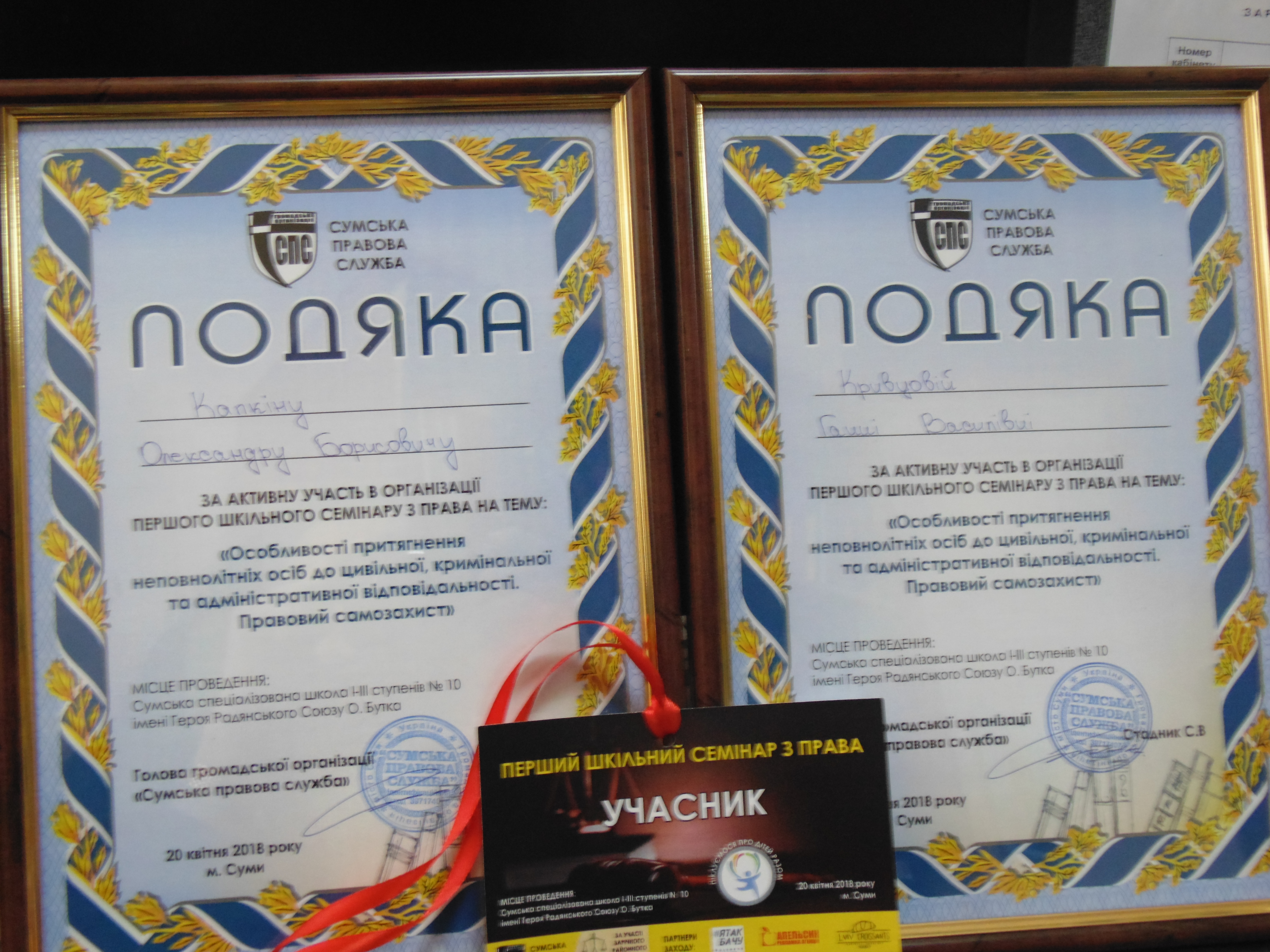 По закінченню семінару учасники-судді Зарічного районного суду м.Суми за активну участь в організації семінару отримали подяки