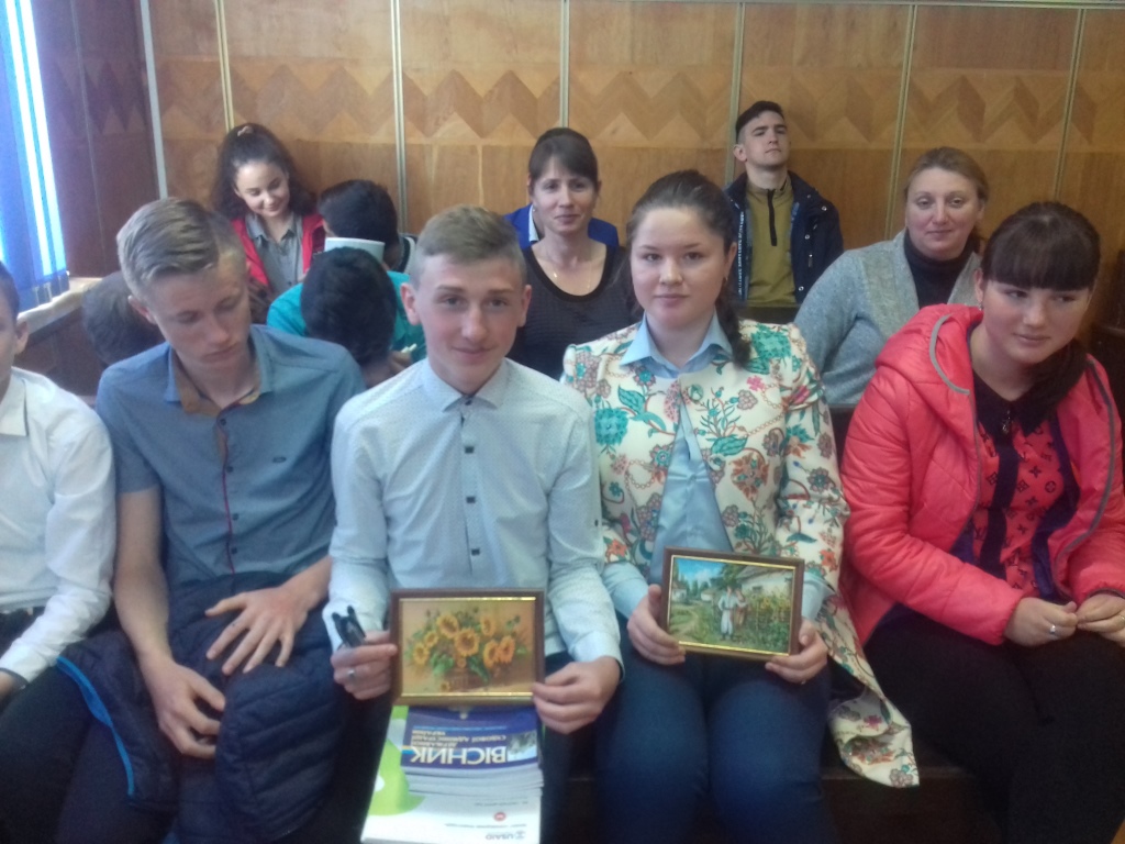 У свою чергу, школярі теж підготувалися до зустрічі та привезли реферати, доповіді на правову тематику та свої малюнки, за які отримали подарунки у вигляді невеликих картин.