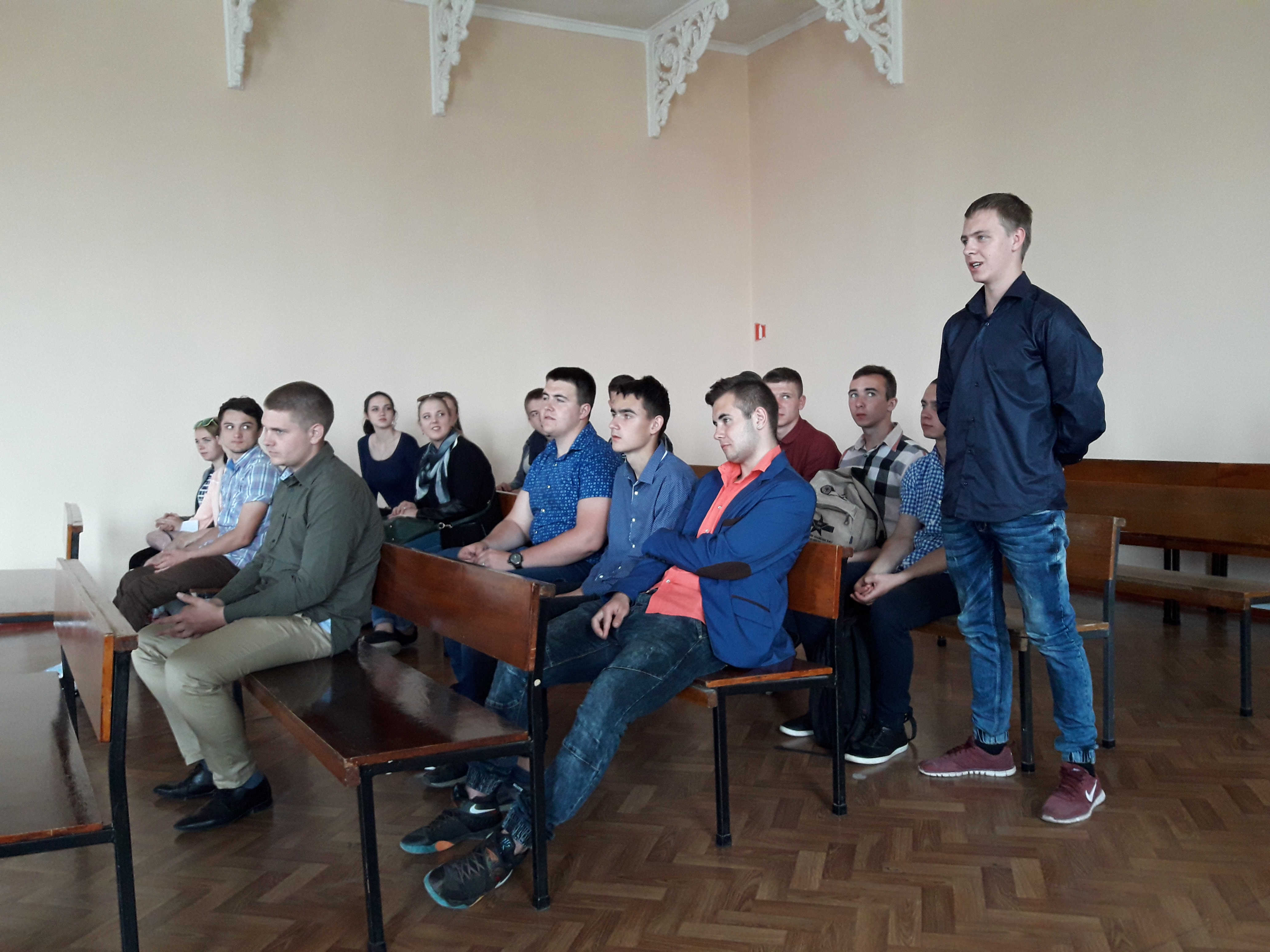 Заступник керівника апарату суду Андрій Одуд розповів про історію будівлі суду, яка є пам’яткою архітектури міста, про роботу апарату суду, провів студентам екскурсію приміщенням суду.