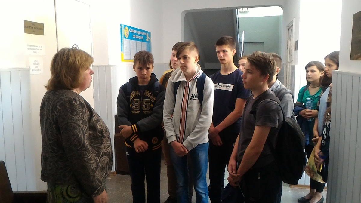 Для старшокласників проведена пізнавальна екскурсія по приміщенню суду, в ході якої старшокласники могли ознайомитись із роботою відділів апарату суду, побачити їх робочі місця та дізнатись про покладені на них функціональні обов’язки. Екскурсія розпочалась з канцелярії суду, де присутні дізналися про реєстрацію, рух документів, що надходять до суду, та про порядок роботи з ними в програмі «Д-3», порядок реєстрації справ різних категорій, порядок ведення обліково-статистичних карток, порядок звернення до виконання судових рішень. Також у доступній для учнів формі роз’яснили порядок надання та отримання інформації, порядок звернення до суду, про що слід пам`ятати під час перебування в суді, як поводити себе на засіданні.