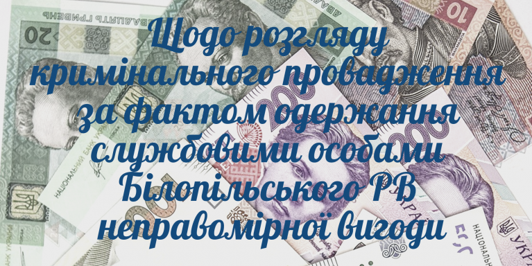 Для інформації: особи обвинувачуються в тому, що вимагали та одержали неправомірну вигоду за не притягнення до кримінальної відповідальності.