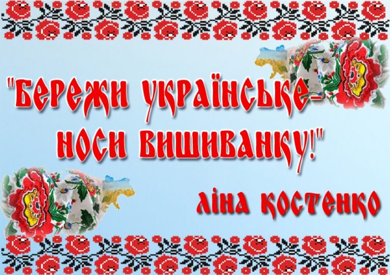 У культурі практично будь-якого народу є речі, які яскраво відображають його особливу національну традицію. Вишиванка - яскравий приклад і підтвердження цьому. День вишиванки - поки ще не офіційне і відносно нове народне свято, покликане сприянню єдності і культурного відродження всього багатонаціонального українського народу. Щороку у третій четвер травня мільйони людей одягають вишиті сорочки на роботу, виробництво, до школи, вузу, дитячого садочку, офісу або просто на прогулянку. В акції беруть участь люди різного віку та соціального становища. Свято не пов’язане з будь-якими політичними чи релігійними поглядами, воно покликане нагадати громадянам країни про їх етнічну приналежність і відродити народні звичаї.